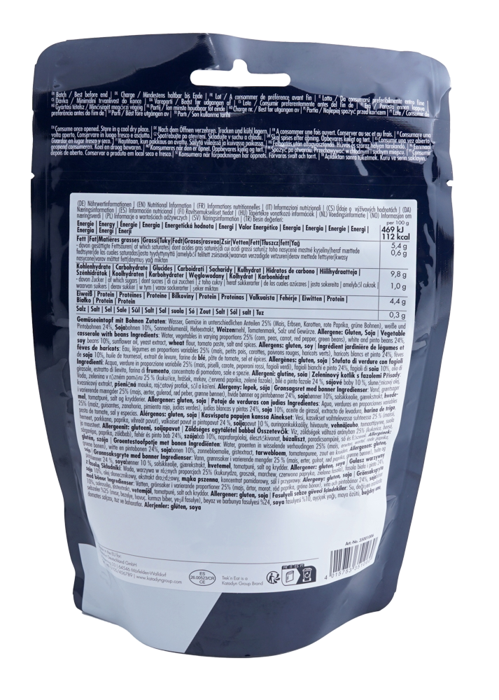Entdecke den wohlschmeckenden Trek'n Eat Gemüseeintopf mit Bohnen, eine perfekte Kombination aus frischem Gemüse und herzhaften Bohnen, die dir unterwegs eine nahrhafte Mahlzeit bietet.